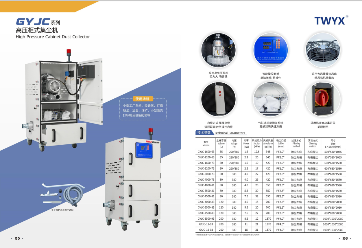 柜体布袋集尘机适用于金属铁屑、石膏粉尘、水泥粉尘、橡胶粉末等类似尘埃和湿尘的收集。现今工业吸尘器在很多领域中都有应用,工业吸尘器的发展将会越来越快,可全天候24小时不停运作,配套各种精密机械,作业于机台设备、悬挂设备、天花板、墙壁、地面、角落等工况的清洁打扫。机加工行业:配套机床、磨床、同步吸走各种金属铁屑,工业吸尘器采用旋风分离器作为一层过滤,再经过滤芯进行高精度过滤。对设备、仪表等选型本着可靠、经济、适用的原则,普通滤芯过滤精度一般在1微米以上,但通过覆膜或采用特殊材料处理的滤芯,过滤精度可达到0.3微米以下。工业吸尘机配置的380V工业电机基本上均可24小时连续工作同时坚固耐用,